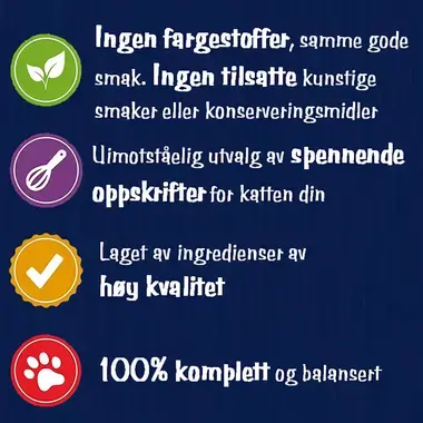 Disse spennende Sensations-variantene er laget med ingredienser av høy kvalitet og kommer i en praktisk pose med lett og sprø topping som du kan drysse over kattens måltid for en herlig og tilfredsstillende knas. De er også en kilde til Omega-6-fettsyrer, og er utformet med den rette kombinasjonen av vitaminer slik at katten din holder energien oppe og er klar for nye rampestreker! De er fullpakket med sunne ingredienser og tilfredsstiller 100% av kattens daglige behov når de blir servert i henhold til retningslinjene. Og ikke nok med det! LATZ Sensations Crunchy er tilgjengelig i et bredt spekter av smakskombinasjoner i velsmakende gelé med deilig sprø topping.