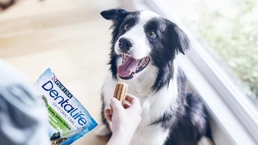 Forbedre hundens tannhelse med bare én pinne fra Dentalife om dagen. Det er vitenskapelig bevist å redusere oppbygging av tannstein i løpet av 28 dager.